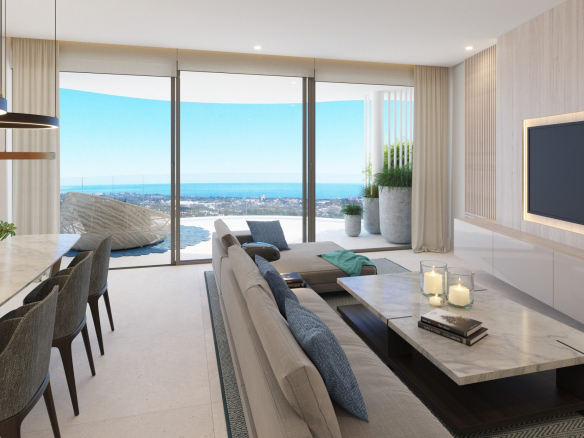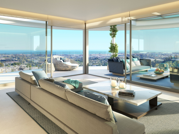 Spectacular architectural design for unique apartments on the Costa del Sol, exclusive residential complex composed of 2, 3 and 4 bedroom apartments and penthouses located between Marbella and Benahavís. Starting with seven iconic buildings that will house 49 spacious homes set in stunning gardens, The View Marbella create a unique atmosphere in which every single apartment is beautifully integrated within the natural surroundings, taking full advantage of the amazing views at the same time. The complex development will be followed in the second phase by a 58 luxury apartments and penthouses with panoramic views. Every floor plan has been carefully studied to optimise the use of our generous internal spaces and natural light, to enjoy the incredible views, as well as to ensure the privacy of each home. The latest technologies will guarantee your full comfort and make you feel at home. At The View Marbella you will experience luxurious and contemporary living in an exclusive location. From its elevated position just above Marbella’s emblematic golf valley, you will enjoy its breathtaking views from its huge terraces across the Mediterranean Sea towards Gibraltar and the coasts of África, this must be one of the most attractive views in the world.